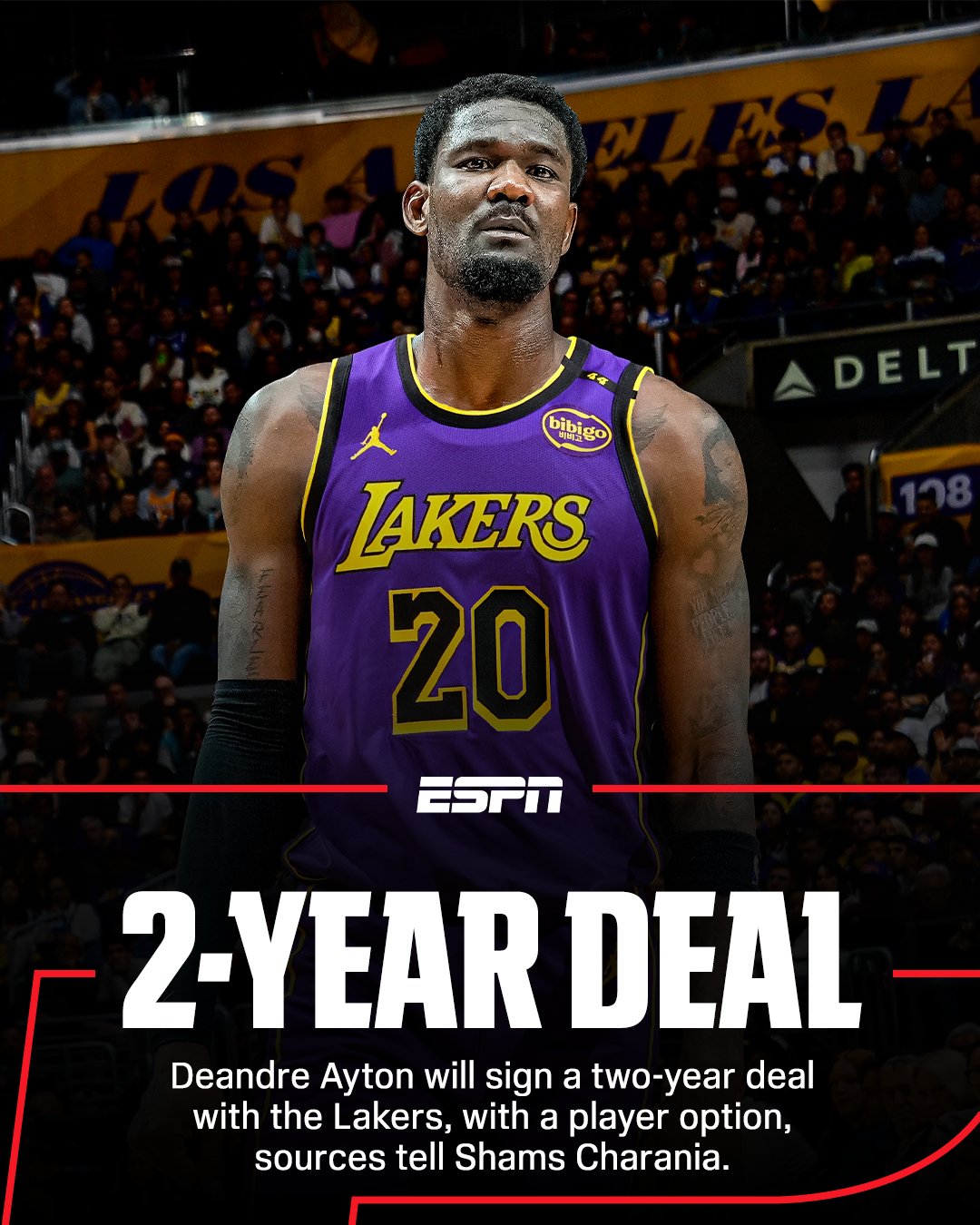 据记者Jake Fischer报道,消息人士透露,艾顿和湖人达成两年合同,起薪是810万美元。