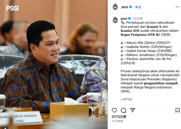 8月26日讯 印尼足协今日官方宣布,在近日召开的印尼众议员会议上,5名球员的归化日程已得到会议通过。