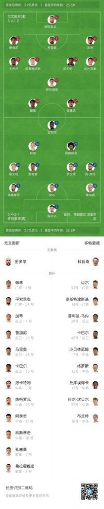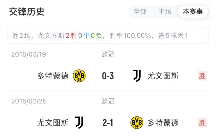 尤文意甲开赛收获3连胜积9分排前二,多特2胜1平积7分位列第二。双方此前在欧冠有2次交手,尤文均取得胜利。