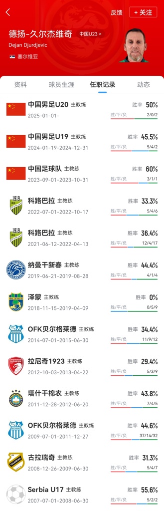久尔杰维奇,1967年7月4日出生于塞尔维亚,欧足联职业级教练。球员时期曾效力于OFK贝尔格莱德(塞尔维亚)、古拉瑞奇(塞尔维亚)、AIK索尔纳(瑞典)等球队。担任教练员后,曾执教过OFK贝尔格莱德(塞尔维亚)、塔什干棉农(乌兹别克斯坦)、塞尔维亚U-17国家男子足球队等球队。2023年3月,久尔杰维奇出任中国国家男子足球亚运队主教练,率队时隔17年后再度晋级亚运会八强;2024年1月,久尔杰维奇出任中国U-19国家男子足球队主教练,率队参加2025年U20亚洲杯,晋级八强。